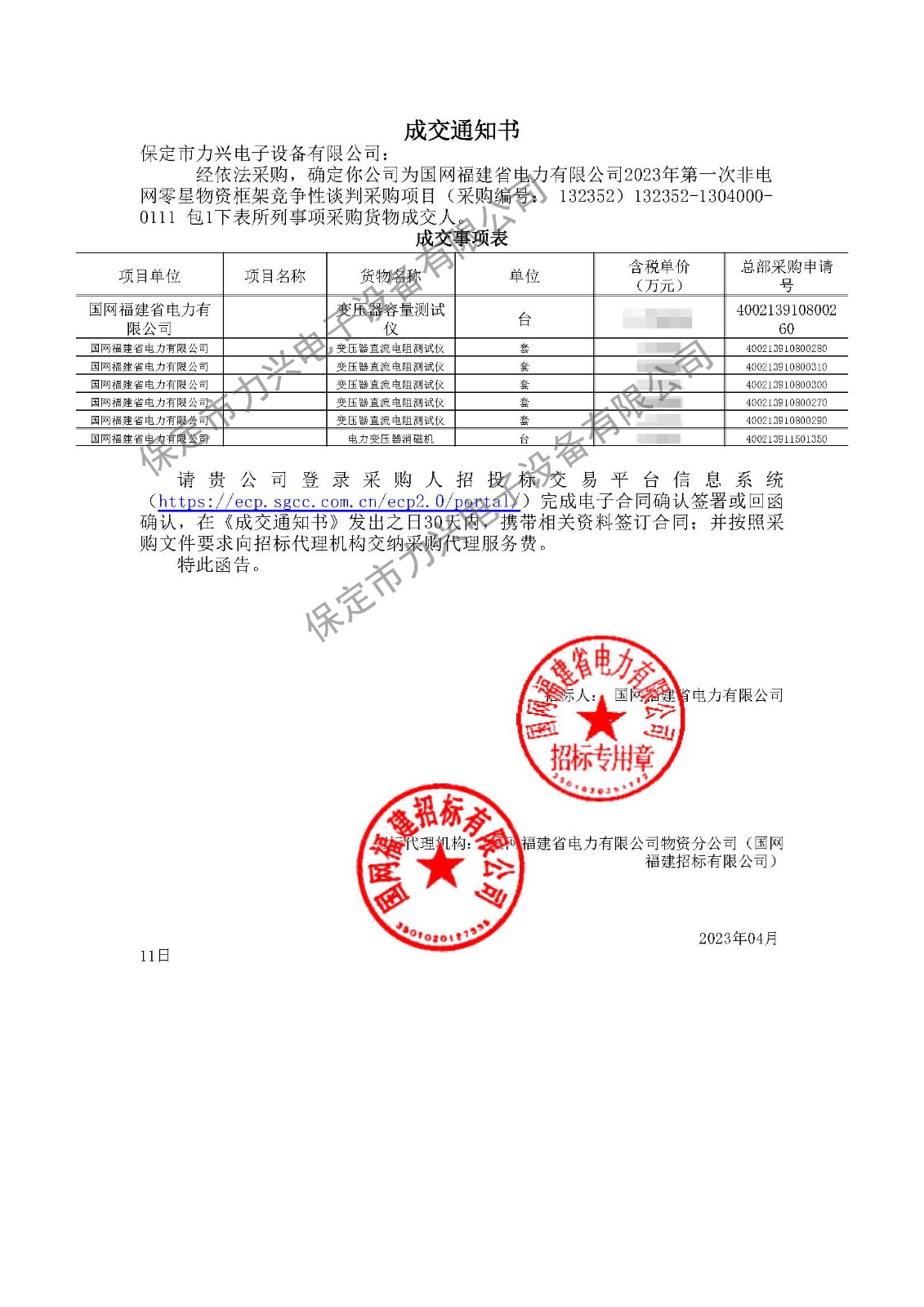 5. 2023.06.25 国网天津市电力公司2023年第三次物资竞争性谈判项目(中标2个包)